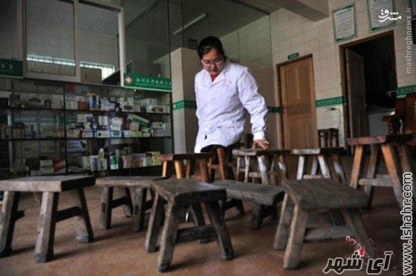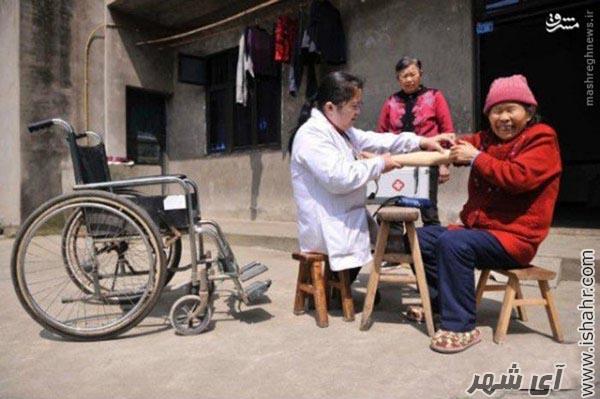 او که حالا ۳۷ سال سن دارد، مدت ۱۵ سال است که با استفاده از دو چهارپایه چوبی، بیماران روستای زادگاهش در استان چونگ کینگ واقع در جنوب غربی چین را ویزیت می کند.