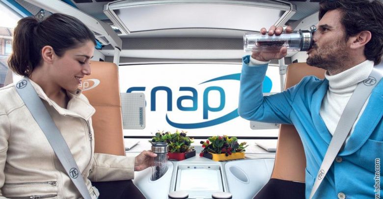 خودرو بدون راننده Snap بصورت دو تکه طراحی گردیده است که تکه دوم آن بصورت غلاف عمل می کند و هر گاه لازم باشد از هم جدا می شوند . بخش زیرین آن بصورت یک اسکیت بورد می باشد که قابلیت حرکت سریع را دارد . در زمانی که نیاز به حمل و نقل مسافر نباشد از هم جدا می شوند و بصورت یک مکان مناسب جهت گذراندن اوقات تفریح ، ایجاد فضای رمانتیک و … بکار می رود .