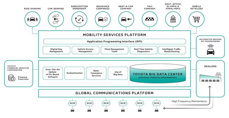 تمام جنبه های کلیدی در صنعت حمل و نقل در سال ۲۰۱۷ در یک طرح جمع شده است ، تویوتا e-Palette شامل حرکت خودرو بدون سرنشین ، ارائه خدمات توسط فن آوری اطلاعات دیجیتال ، خودروی تمام الکترونیک و همه خصوصیت های یک خودروی دیجیتال در تویوتا e-Palette قرار گرفته است و آن را تبدیل به یک خودرو خاص کرده است ، که تمام خدمات روزانه را تسهیل می کند .