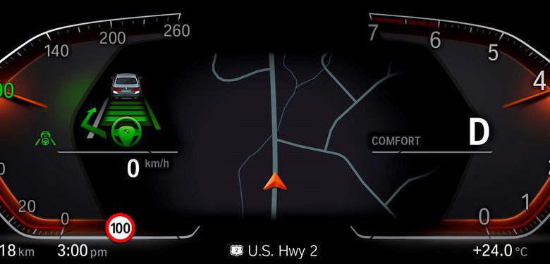 جلو داشبورد دارای دو صفحه نمایش ۱۲.۳ اینچی می باشد، که یکی به عنوان صفحه اصلی به عنوان صفحه کنترل اتومبیل می باشد، و دیگری خدمات جانبی را به عهده دارد. اما BMW در حال کار بر روی سیستم کنترل صدای “hey BMW” است تا جایی که می توانید از او سطح روغن خودرو را بپرسید و یا او از شما سوال می کند که احساس خستگی می کنید؟ در صورت راه افتادن این سیستم می توانید تنظیم نور و رنگ نور ، نوع موسیقی و درجه حرارت را بصورت صوتی تنظیم کنید.