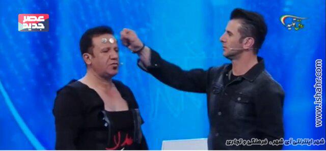 گواه این ادعا نیز زمانی بود که آقای مختاری نشان داد به دلیل مو دار بودن صورتش، قاشق و دیگر اشیا به صورتش نمیچسبد و از امین حیایی خواست تا اشیا را به پیشانی بدون موی وی بچسباند.